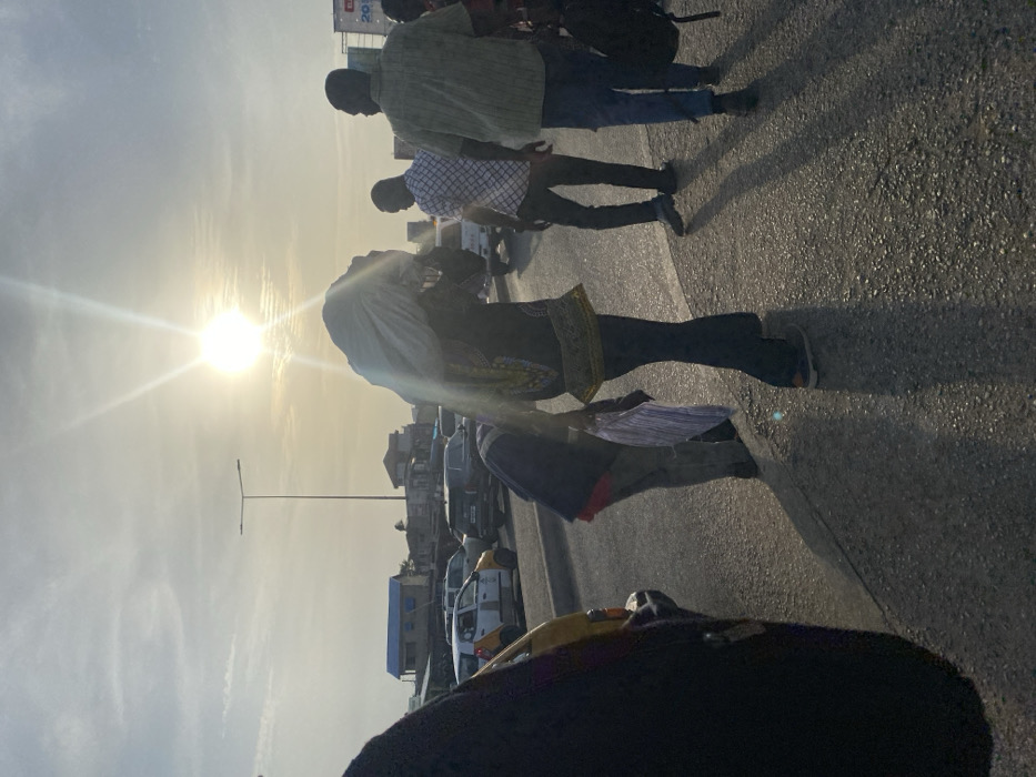 - "The image depicts an urban street scene in Accra, Ghana, during either sunrise or sunset, characterized by a prominent, low sun causing strong glare and casting long shadows across the paved surface" by FM-pLZic2, licensed under CC BY 4.0