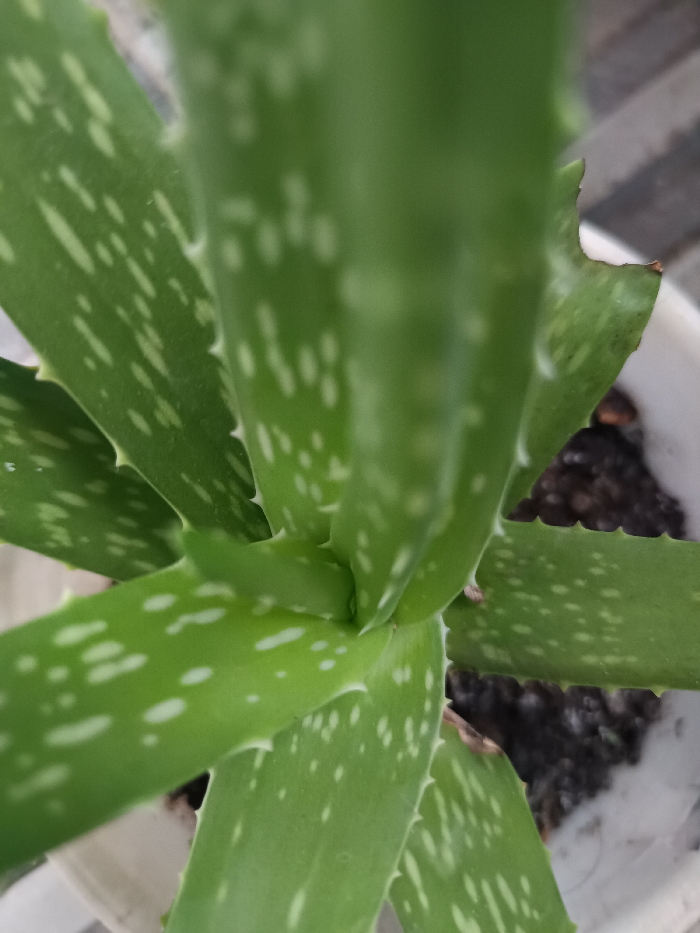 - "A top-down, close-up image depicts an *Aloe vera* plant contained within a white, cylindrical pot, located in Ouderkerk aan de Amstel, Netherlands" by FM-PvkdH3, licensed under CC BY 4.0