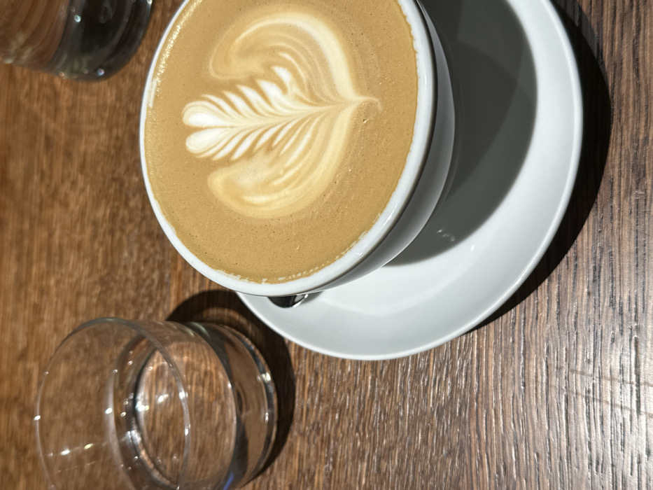 - "The image displays an overhead perspective of a coffee beverage and a glass of water situated on a wooden surface" by FM-cVWYb2, licensed under CC BY 4.0