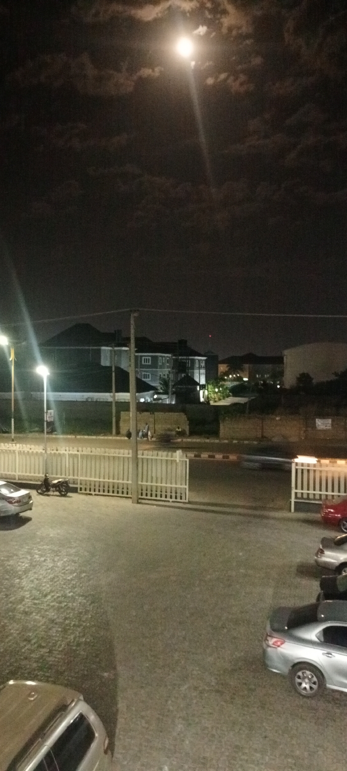 This image captures a nighttime urban scene in Barden Yana, Nigeria