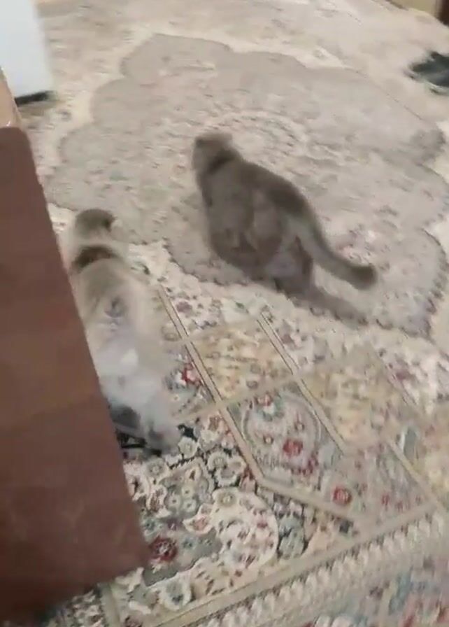 - "two grey long-haired cats on a patterned rug indoors" by FM-o4pOG2, licensed under CC BY 4.0