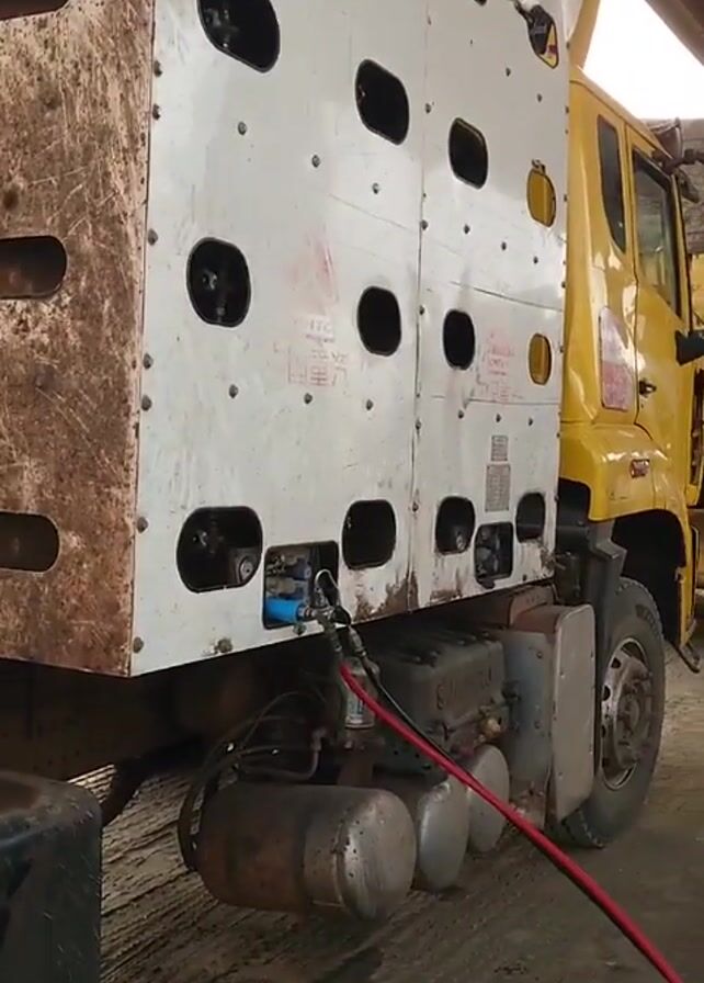 - "The video pans from a large, white and silver truck with a slatted back, to the right showing a yellow dump truck parked beside it under a metal awning" by FM-X3B2L2, licensed under CC BY 4.0