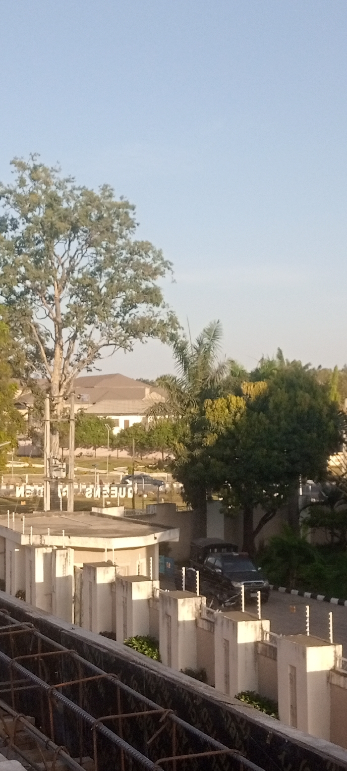 The image depicts an elevated outdoor scene in Unguwar Rimi, Nigeria, under a clear, light blue sky