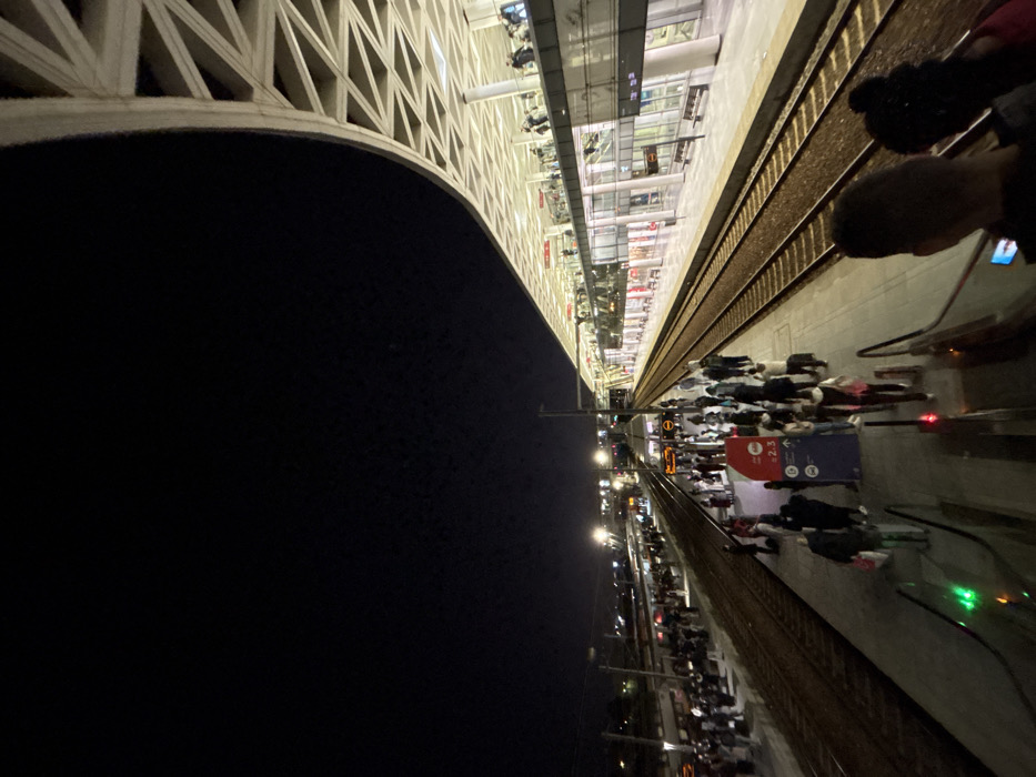 - "An unusual, tilted perspective of a bustling train station at night" by FM-YEyMx1, licensed under CC BY 4.0