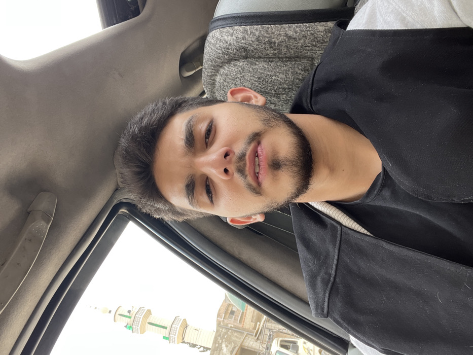 - "The image depicts a young adult male, likely in his 20s, with dark hair, a trimmed beard, and mustache, taking a selfie while seated in a vehicle" by FM-WnN6r1, licensed under CC BY 4.0