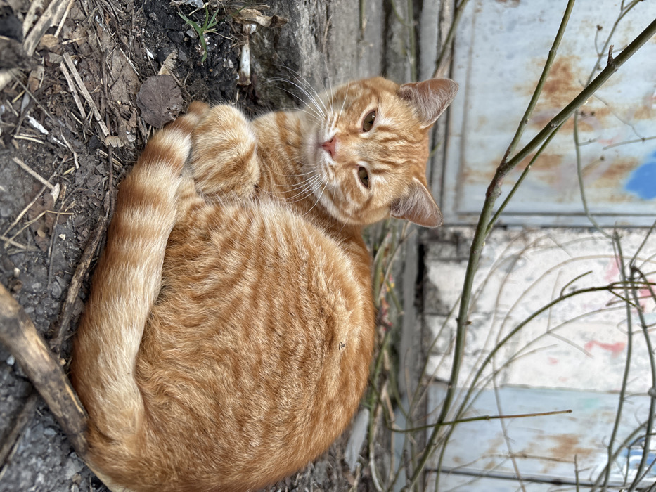 - "A ginger tabby cat is depicted resting on the ground in an outdoor urban environment in Sofia, Bulgaria" by FM-jN6bB2, licensed under CC BY 4.0