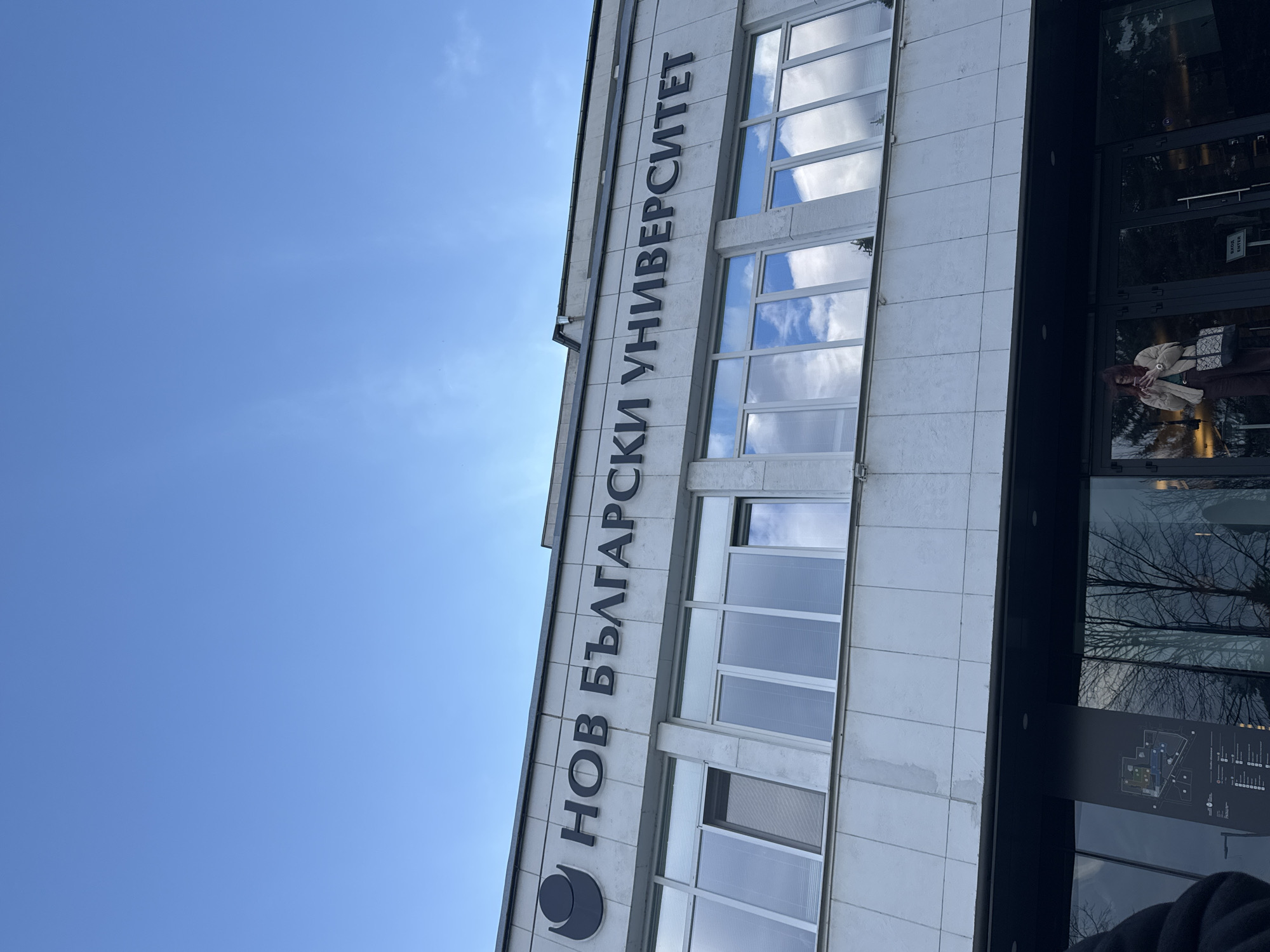 - "An outdoor, low-angle shot captures the facade of the New Bulgarian University (НОВ БЪЛГАРСКИ УНИВЕРСИТЕТ) building in Sofia, Bulgaria, against a clear blue sky with sparse white clouds" by FM-kGN0C2, licensed under CC BY 4.0