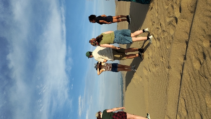 - "Five individuals are positioned on a sun-drenched sand dune, characteristic of the Huacachina Oasis desert landscape near Ica, Peru" by FM-Iwr2P2, licensed under CC BY 4.0
