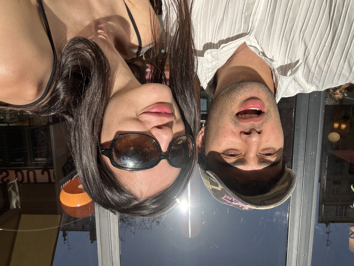 - "A close-up image depicts two individuals, an adult male and an adult female, captured in a selfie at an outdoor cafe or restaurant, likely in Paris, France" by FM-3vHkT2, licensed under CC BY 4.0