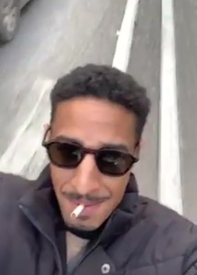 - "A man in sunglasses is walking across a crosswalk, holding a cigarette in his mouth, while recording a selfie video" by FM-Gn7EC2, licensed under CC BY 4.0