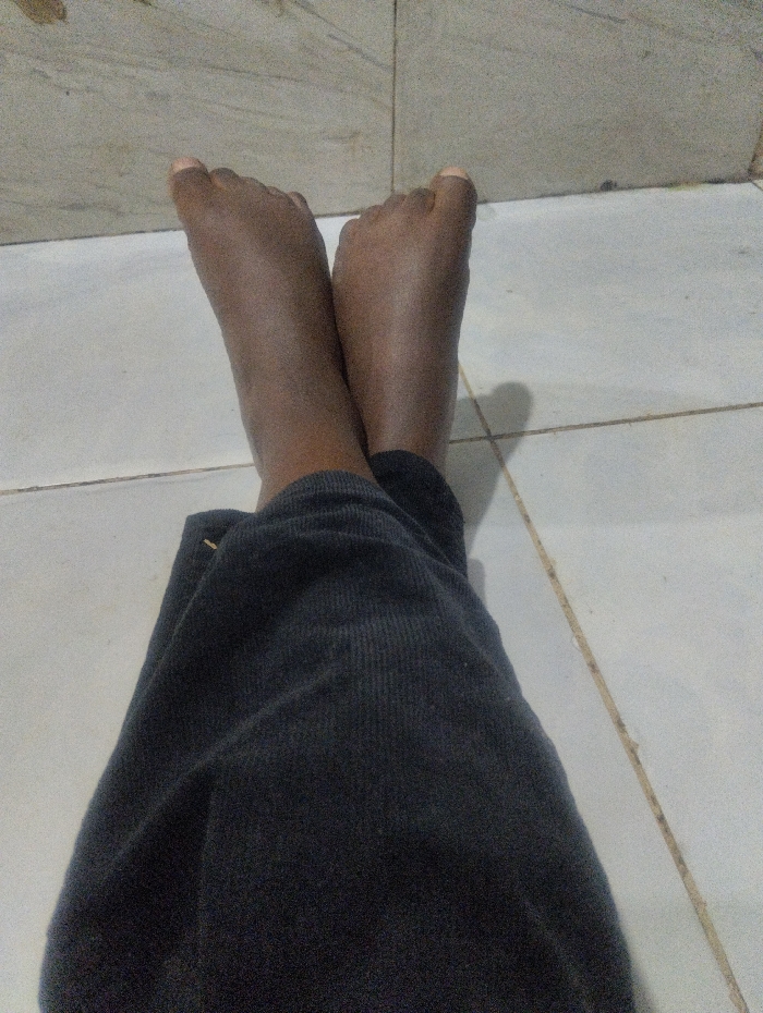 - "In an interior setting within Mahiakalo ward, Kenya, a pair of human feet, exhibiting a dark skin tone, are positioned crossed at the ankles" by FM-ceYJN2, licensed under CC BY 4.0