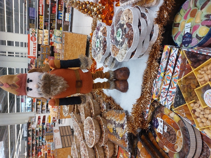 - "This image captures a festive retail merchandise display located within a supermarket or hypermarket in Noyelles-Godault, France" by FM-gCkm43, licensed under CC BY 4.0