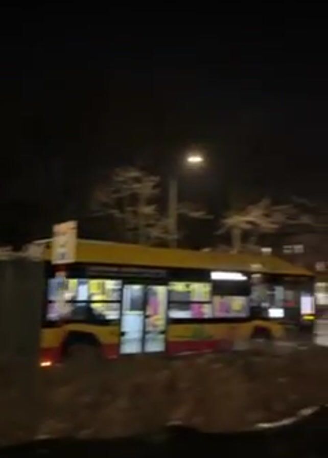 - "At night, a yellow and red city bus drives by on a street" by FM-ngx9o2, licensed under CC BY 4.0