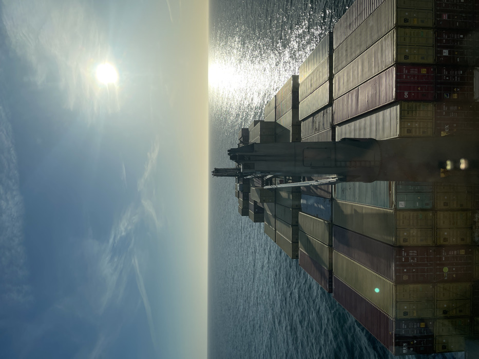 - "A container ship is depicted underway on the open sea, under a clear blue sky with sparse wispy clouds, within the general vicinity of the city of Unknown, Unknown" by FM-9uyr63, licensed under CC BY 4.0
