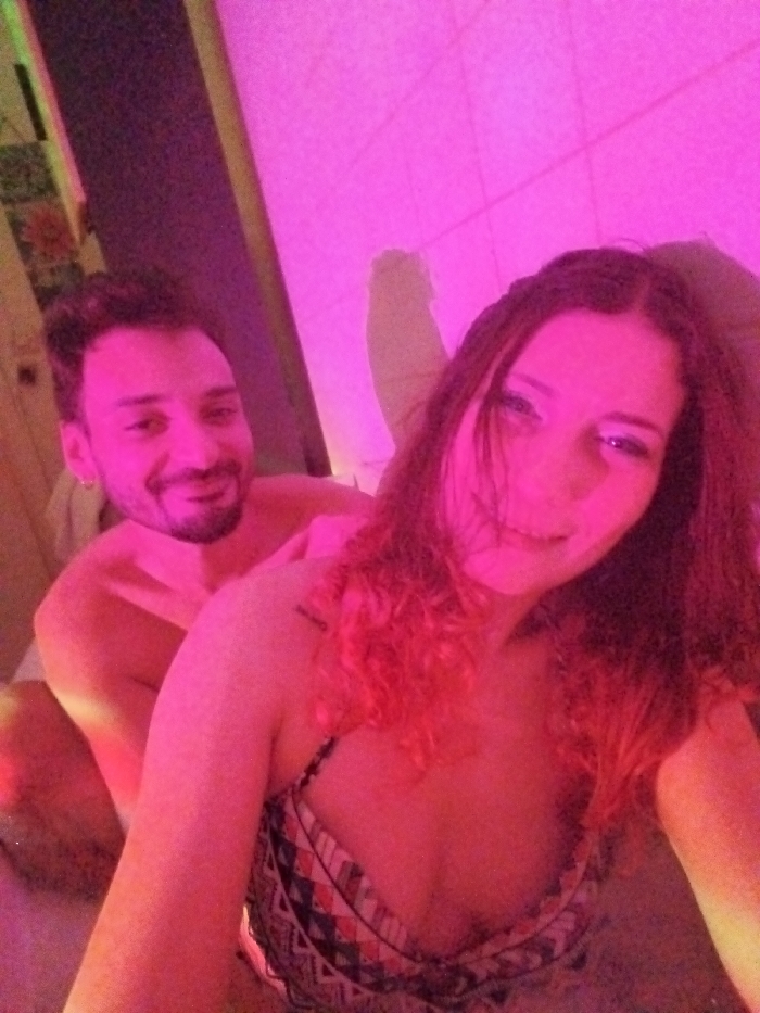 - "A man and a woman are indoors, possibly a spa or relaxation area, illuminated by pinkish-red lighting" by FM-Fezcd2, licensed under CC BY 4.0