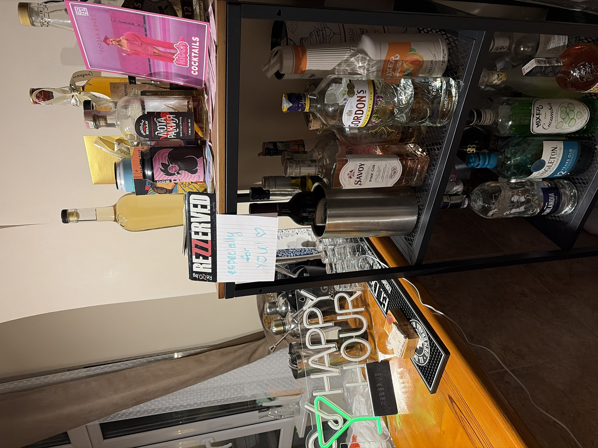 - "This image depicts an indoor bar setup within what appears to be a private residence or event space in Sofia, Bulgaria, identifiable by the "СОУ ЙОРДАН КИЧЕВ" (SU Yordan Kichev) text on a pink poster and "ReZzO" by FM-AgNRy2, licensed under CC BY 4.0