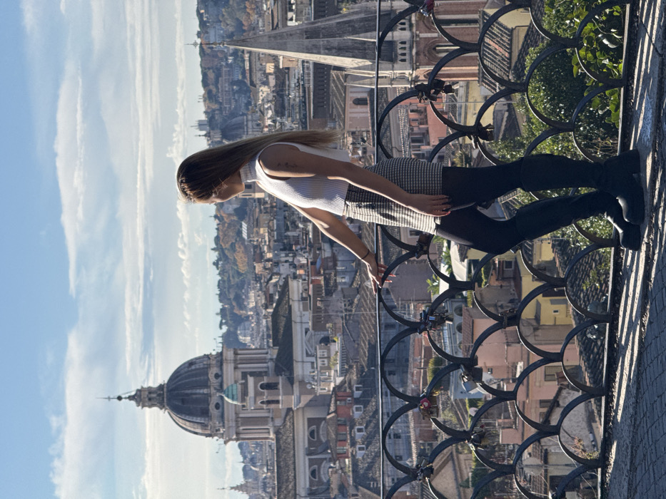 - "The image depicts a slender female, viewed from the right side, standing at a scenic overlook in Rome, Italy, likely on the Capitoline Hill or a terrace of the Altare della Patria (Vittoriano)" by FM-4DZAk2, licensed under CC BY 4.0