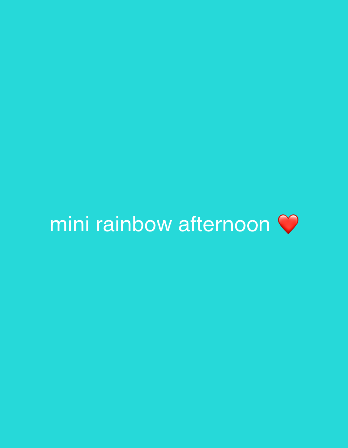 A light teal background displays the text "mini rainbow afternoon" in white, centered horizontally