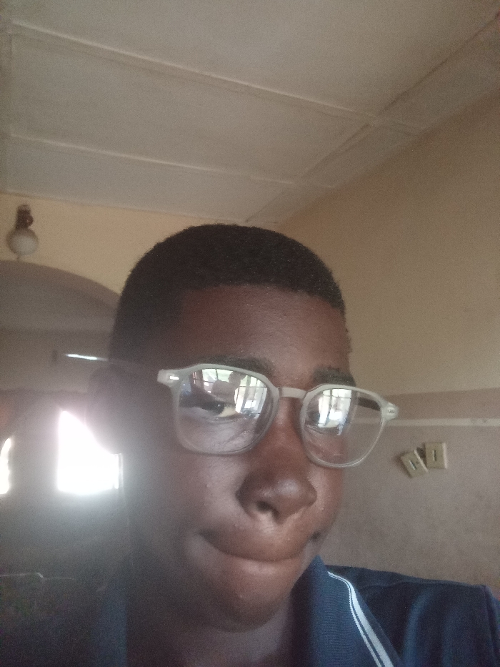 An individual with dark skin, short dark hair, and clear-framed eyeglasses is depicted in a close-up, indoor setting within Adankolo, Nigeria