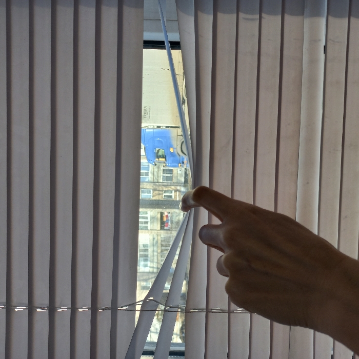 - "The scene, located in the city of Ново-Никольское, Russia, depicts a view from indoors looking out through horizontal, light-colored venetian blinds" by FM-uZFOy2, licensed under CC BY 4.0