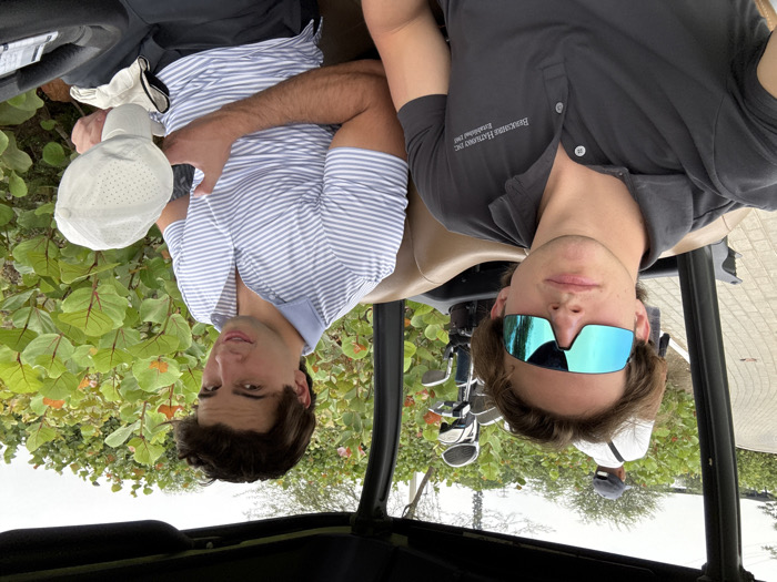 - "Two men are seated in a golf cart with golf clubs visible behind them" by FM-sXyG72, licensed under CC BY 4.0