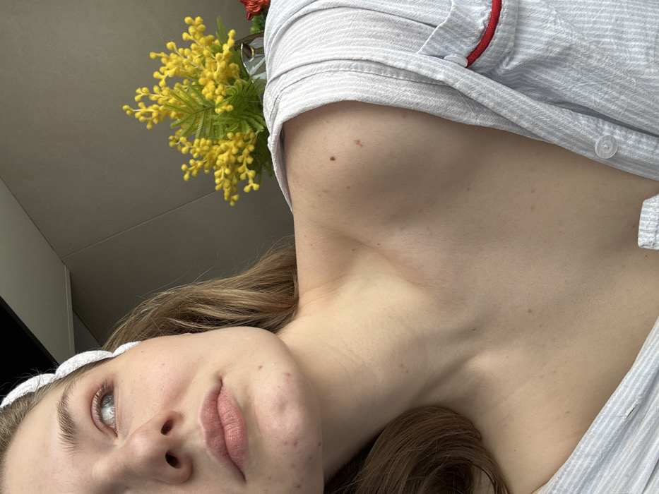 - "A woman in a striped pajama top and white headband lies down, her head tilted towards the camera" by FM-iSKVh2, licensed under CC BY 4.0