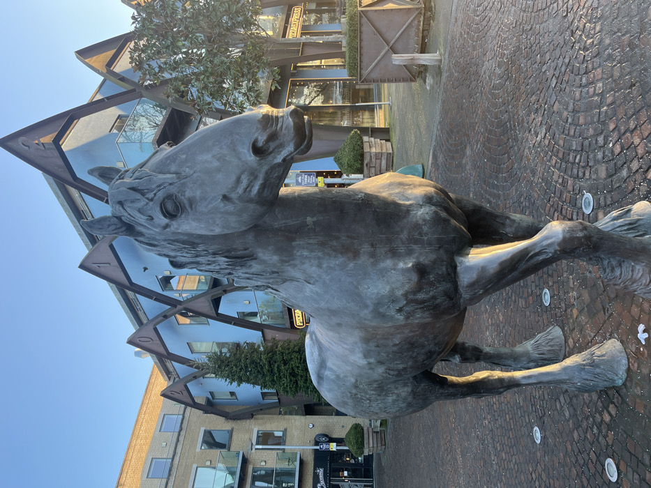 - "A large, weathered bronze statue of a shire horse stands in a pedestrianized urban square at Brewery Square, Dorchester, United Kingdom" by FM-FUjVz2, licensed under CC BY 4.0