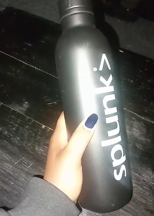 - "A hand with a dark blue fingernail is holding a matte black water bottle with the word "splunk>" printed vertically in white" by FM-FCCQg2, licensed under CC BY 4.0