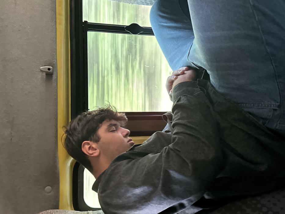 - "A young adult male is depicted sleeping or resting in a moving vehicle, inferred to be in the city of Unknown, Georgia" by FM-XFQ2I2, licensed under CC BY 4.0