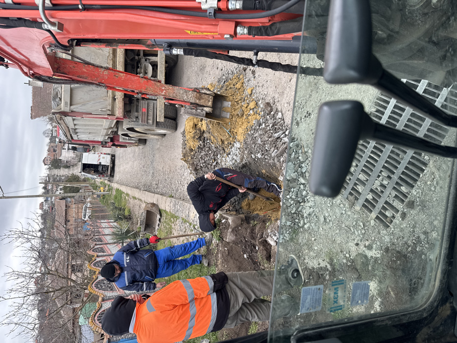 - "The image depicts a construction scene on a residential street in Konstantinovo, Bulgaria, observed from the interior of a piece of heavy machinery, likely an excavator" by FM-s98en1, licensed under CC BY 4.0