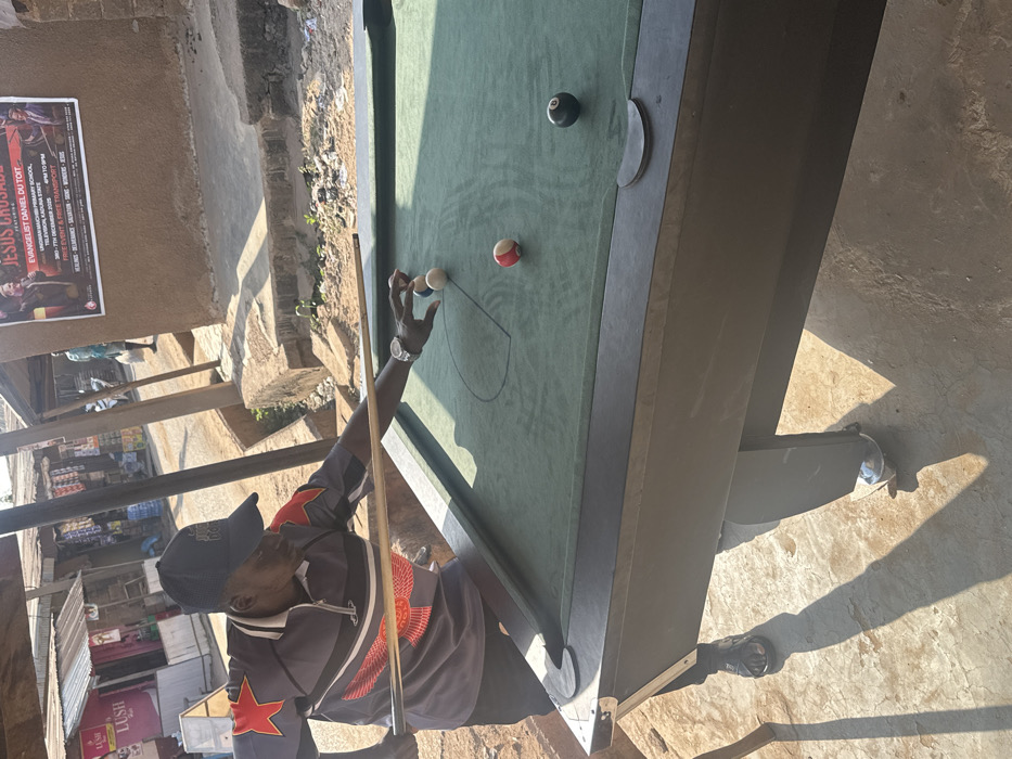 - "An outdoor scene in Television, Kaduna State, Nigeria, depicts a man playing pool on a green-felted table during daylight" by FM-BxwLM2, licensed under CC BY 4.0