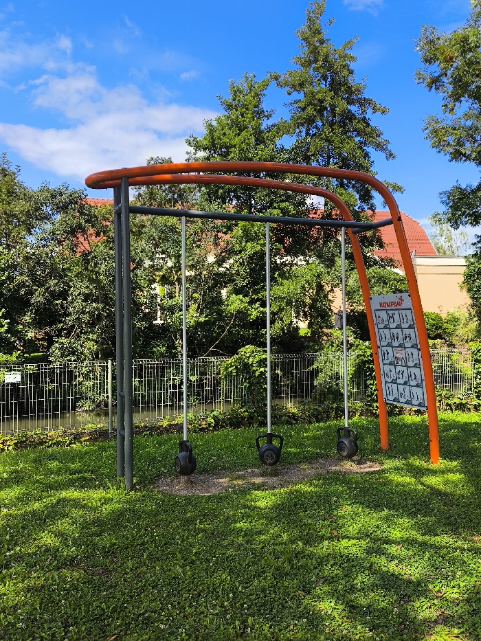 - "An outdoor fitness station is centrally located within a grassy park area in Oberschaeffolsheim, France" by FM-NIq6z1, licensed under CC BY 4.0