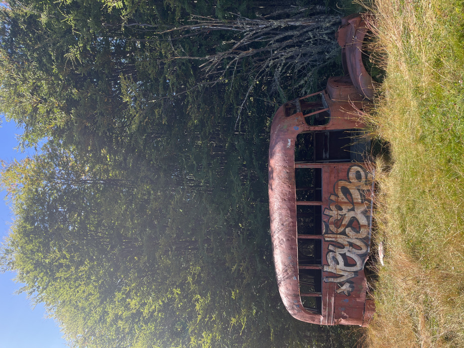 - "The scene depicts a derelict, heavily rusted, red-orange vintage bus situated in an overgrown grassy field in the city of Unknown, Argentina" by FM-yZ5Qz1, licensed under CC BY 4.0
