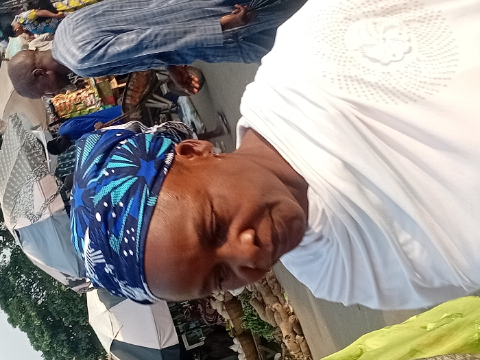 The image displays an outdoor market scene in Ogaminan, Nigeria