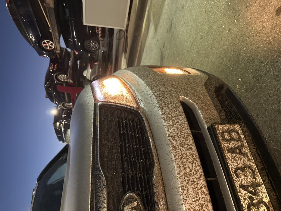 - "The image captures the front-left portion of a light-colored Kia SUV, heavily splattered with dried, reddish-brown mud or dirt, at dusk or night in Radinovo, Bulgaria" by FM-iCfSu2, licensed under CC BY 4.0