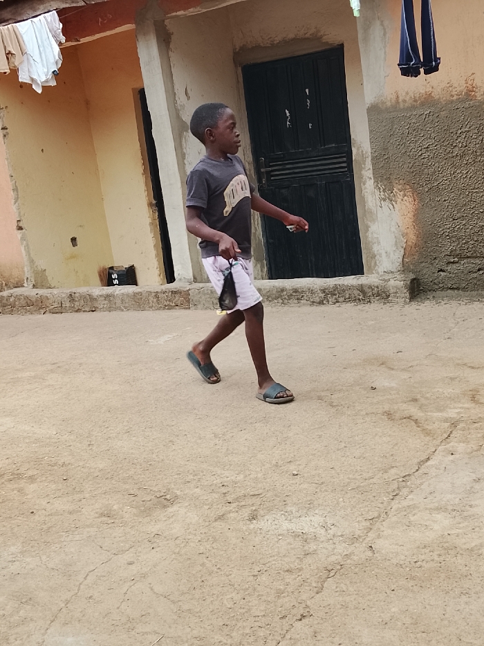 - "The image displays a young male child walking from left to right across a light brown dirt ground in Akwanga, Nigeria" by FM-LIDYd2, licensed under CC BY 4.0