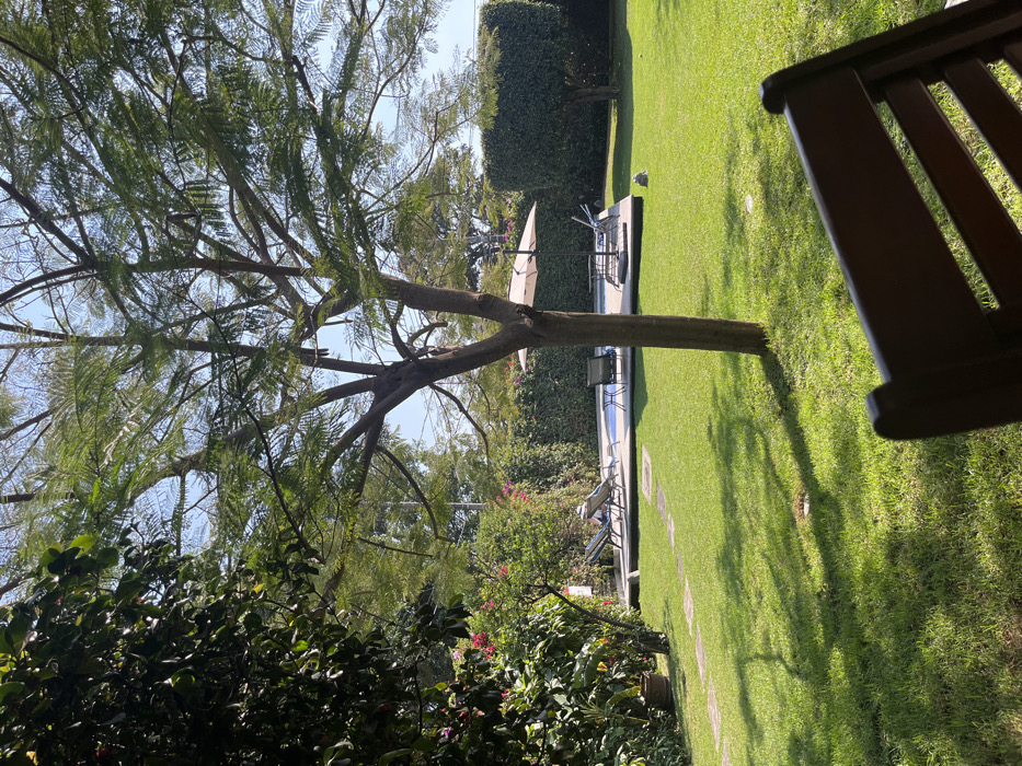 - "A vibrant outdoor scene shows a lush green lawn, a tree with fern-like leaves, and various plants and flowers" by FM-VYYYD2, licensed under CC BY 4.0