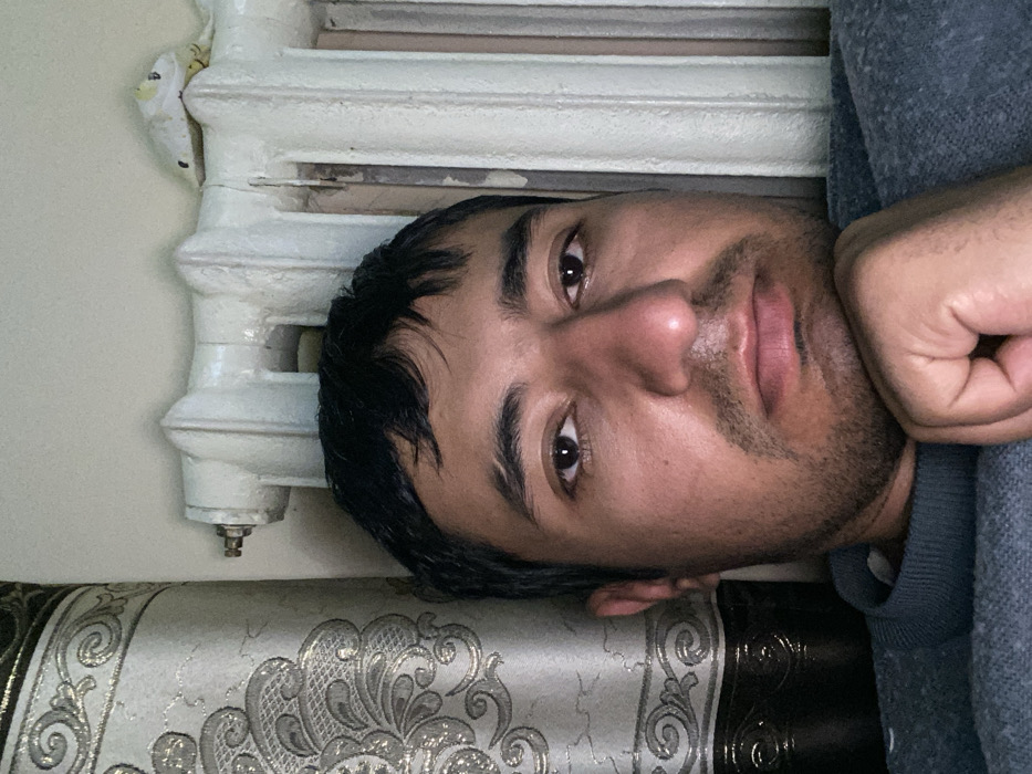 A close-up indoor photograph depicts a male individual in the city of Galaosiyo, Uzbekistan