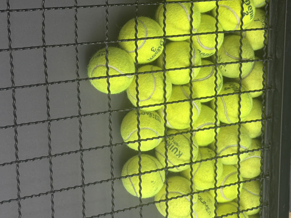 - "A black wire fence partially obscures a large quantity of yellow tennis balls" by FM-TOA2r1, licensed under CC BY 4.0