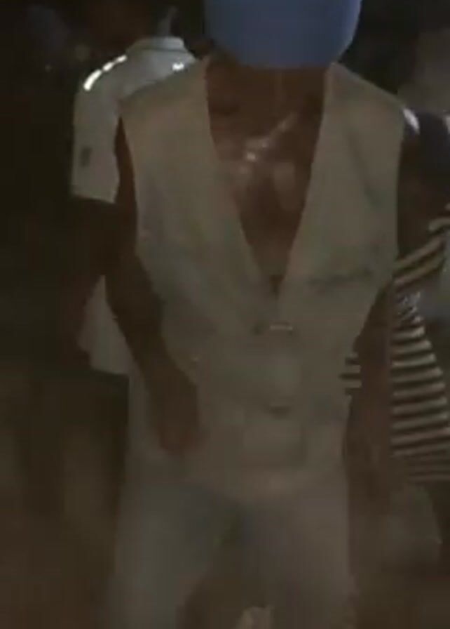 In a dimly lit outdoor setting, a man is dancing