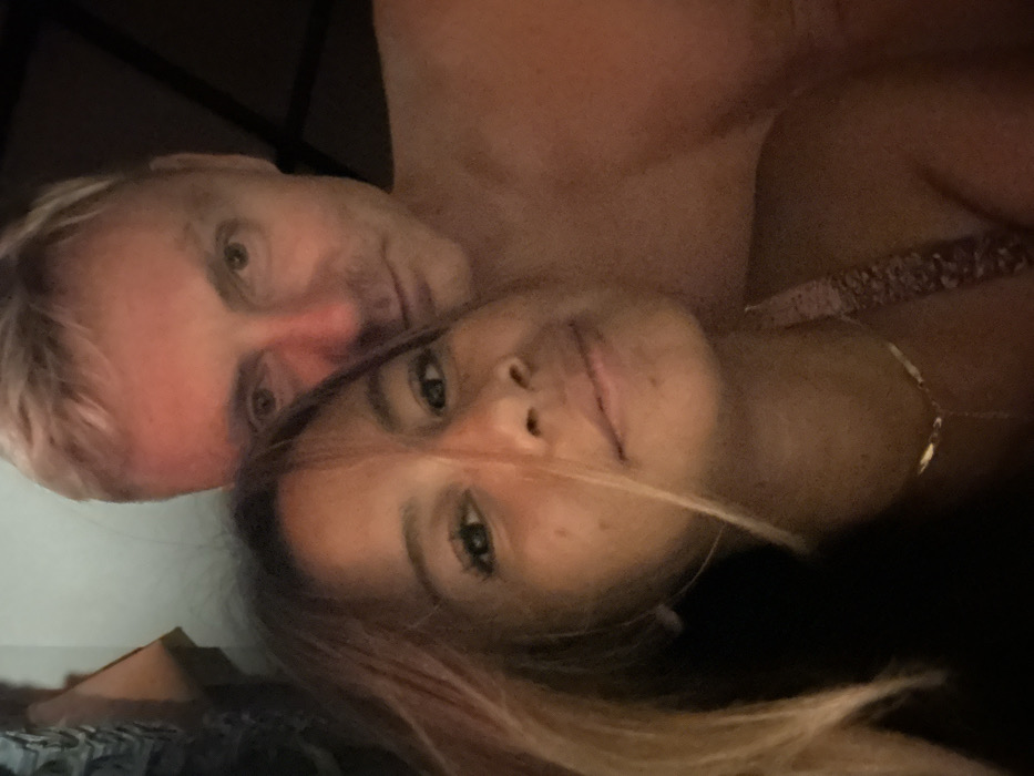 A man and a woman are lying down, with the man’s head partially overlapping the woman’s