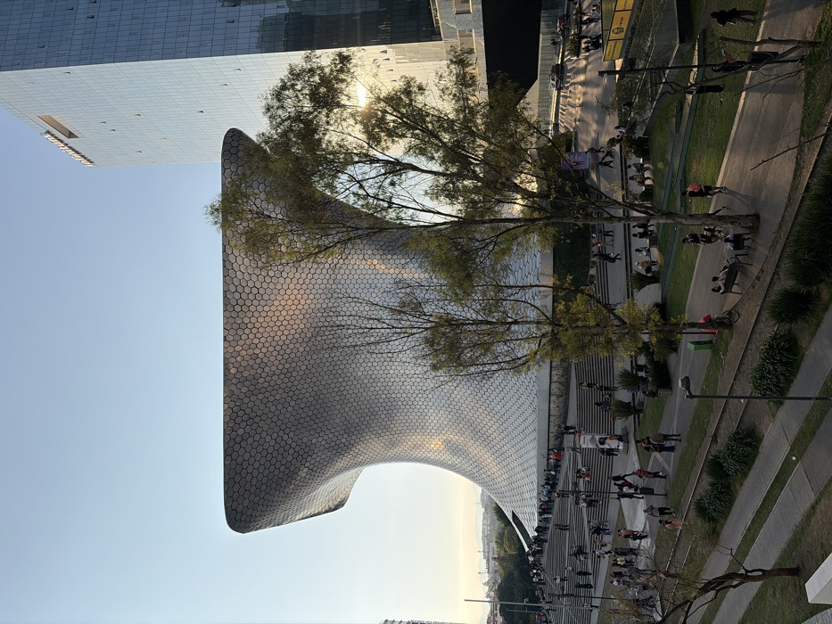 - "A modern building featuring a uniquely curved exterior covered in a honeycomb-like pattern stands next to a contemporary glass skyscraper" by FM-u4bA12, licensed under CC BY 4.0