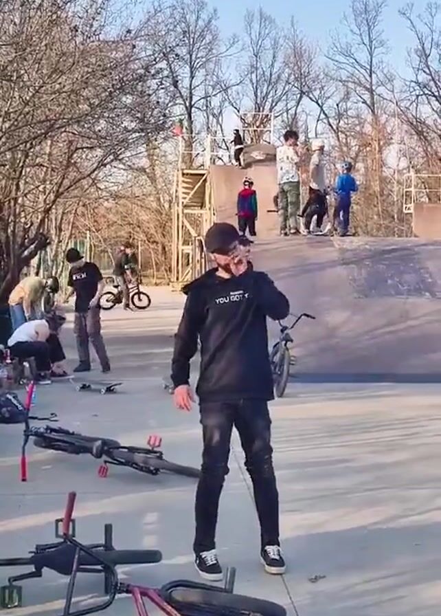 - "man in a black hoodie and cap standing in a skatepark, possibly after a failed bike trick, with two bikes lying on the ground near him" by FM-RsvT33, licensed under CC BY 4.0
