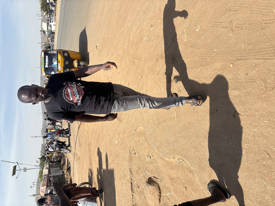 The image depicts a daytime street scene in Nyanya, Nigeria
