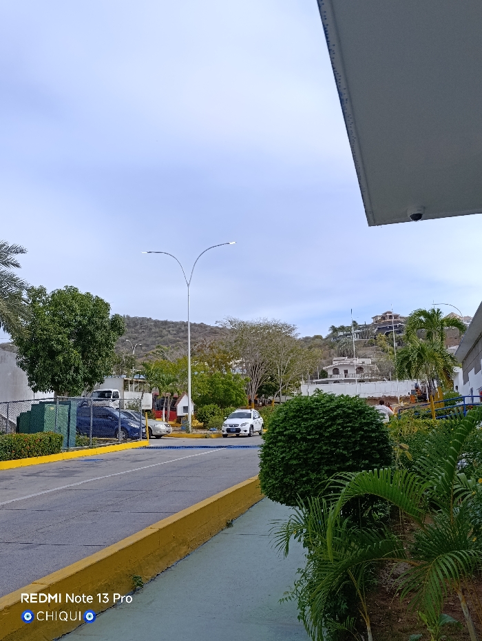 - "This daytime image captures a street scene in Pampatar, Venezuela, viewed from beneath a light-colored building overhang that includes a small, dark spherical security camera mounted on its underside in the upper right corner" by FM-EQ0z73, licensed under CC BY 4.0