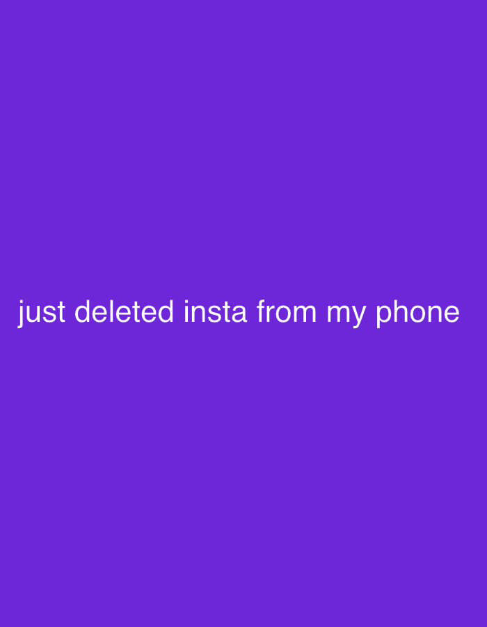 The image is a solid purple background with the text "just deleted insta from my phone" in white, located in the lower center of the frame