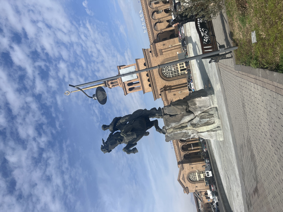 - "The image displays an outdoor urban scene in Yerevan, Armenia, featuring the Sasuntsi David monument and the Yerevan Railway Station under a bright, partly cloudy sky" by FM-543xI3, licensed under CC BY 4.0