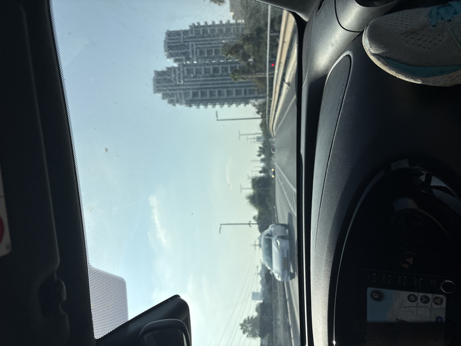 - "The image captures a forensic perspective from inside a vehicle, looking forward through a dirt-speckled windshield onto a multi-lane highway in Tel Aviv, Israel, under a clear, bright blue sky" by FM-0RDsi1, licensed under CC BY 4.0