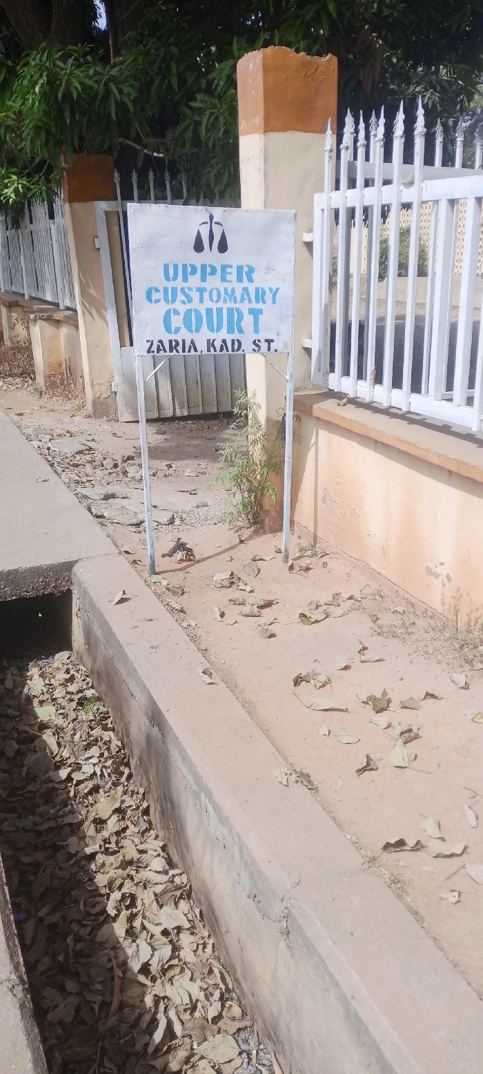 A sign reading "Upper Customary Court, Zaria, Kad