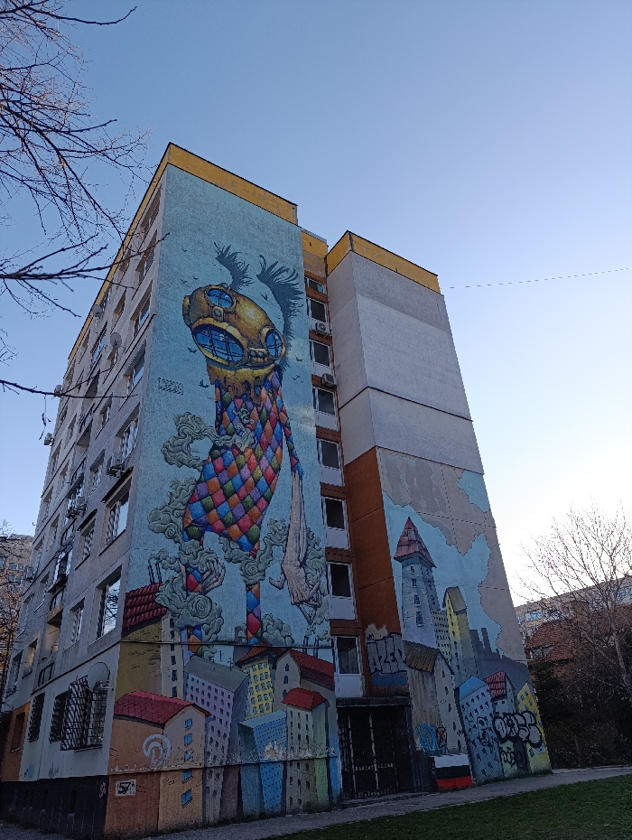 - "A multi-story residential building in Sofia, Bulgaria, features extensive murals across two facades" by FM-k8Oba2, licensed under CC BY 4.0